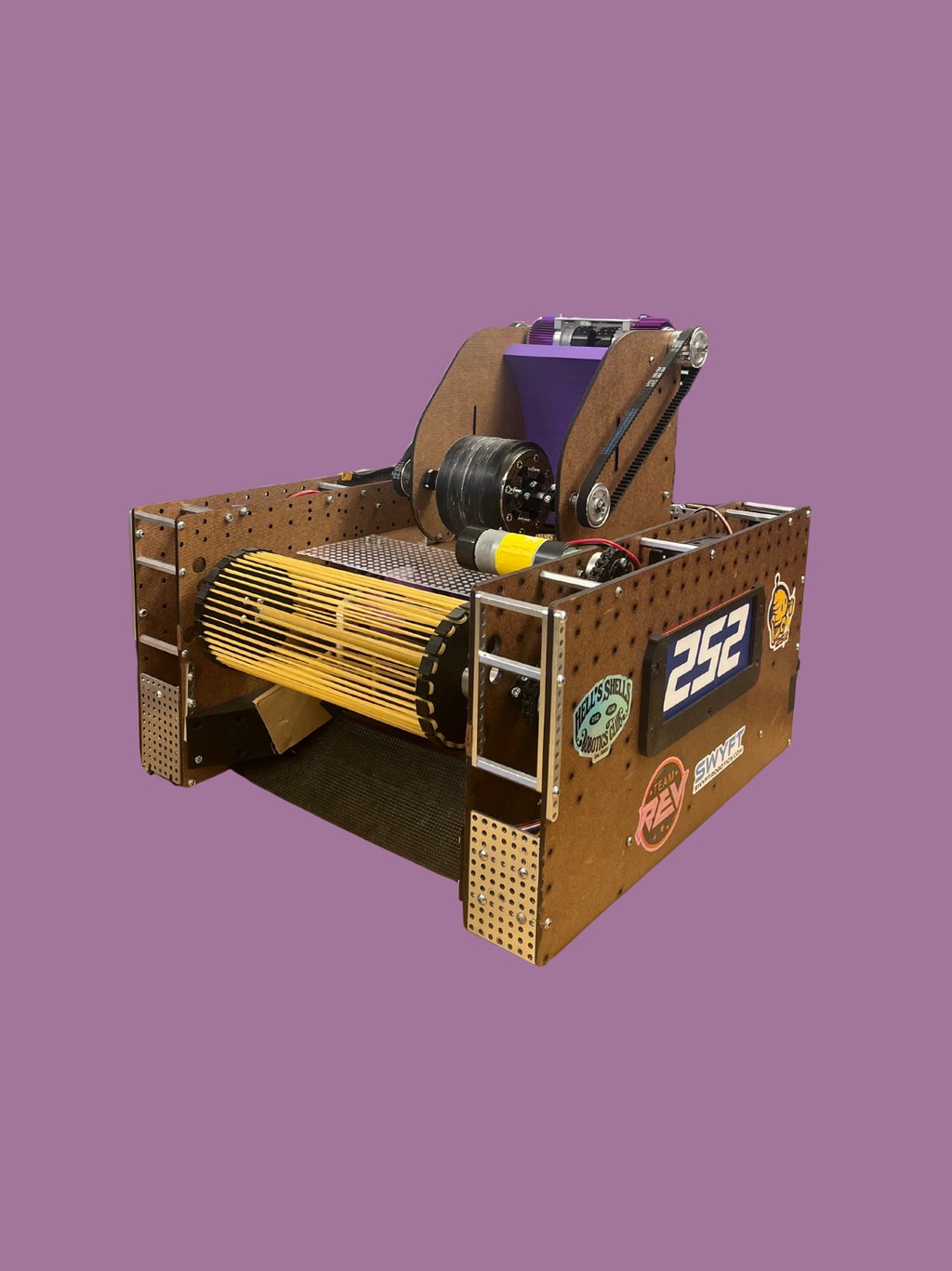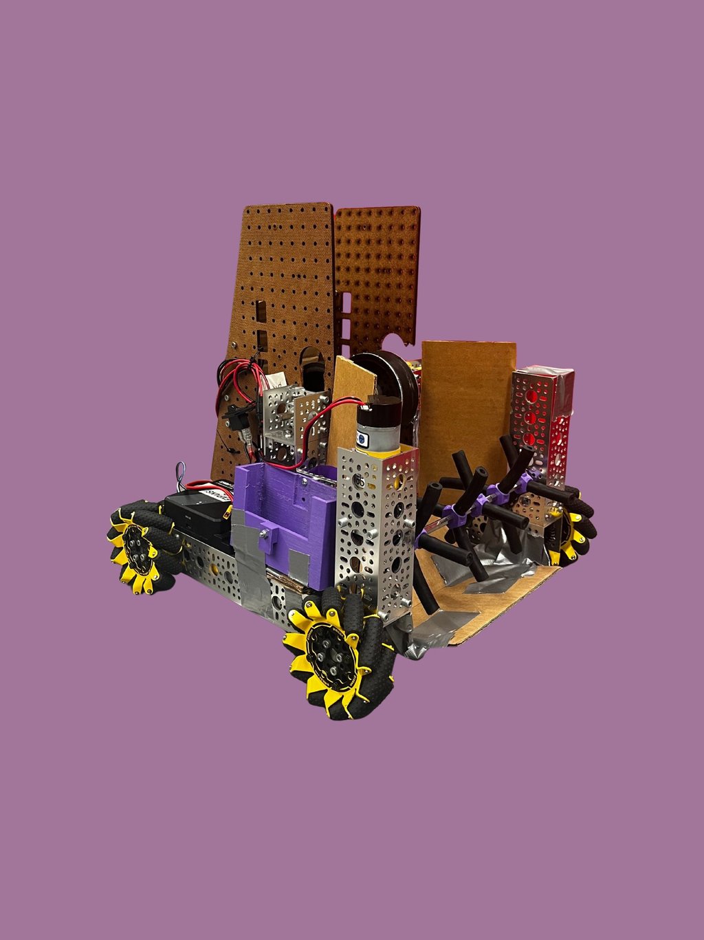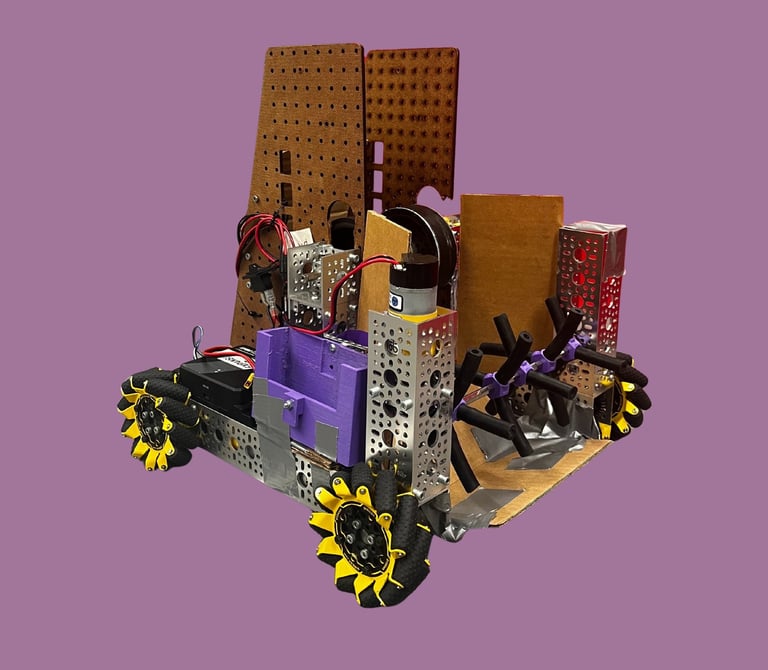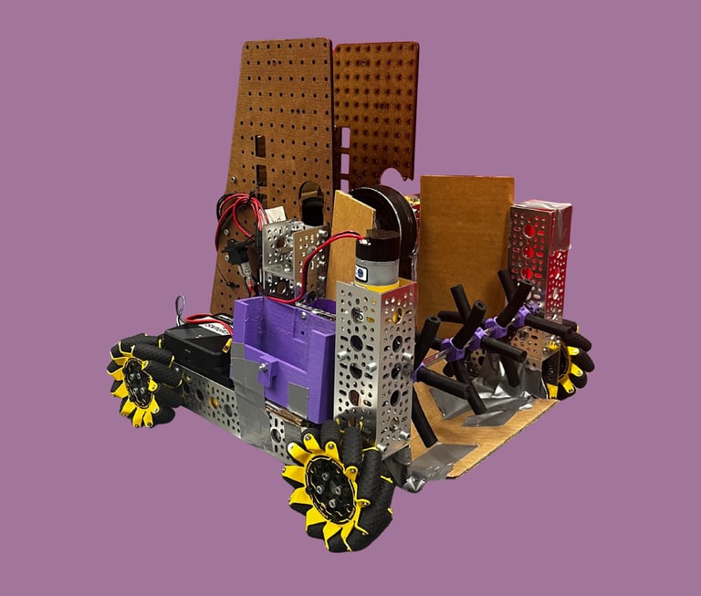 Here's our first robot this season. It was made for the robot in 30 hours competition. Made of the "highest quality" components, this robot can pick up and shoot artifacts with varying levels of success. It uses an active intake as well as a flywheel based shooter